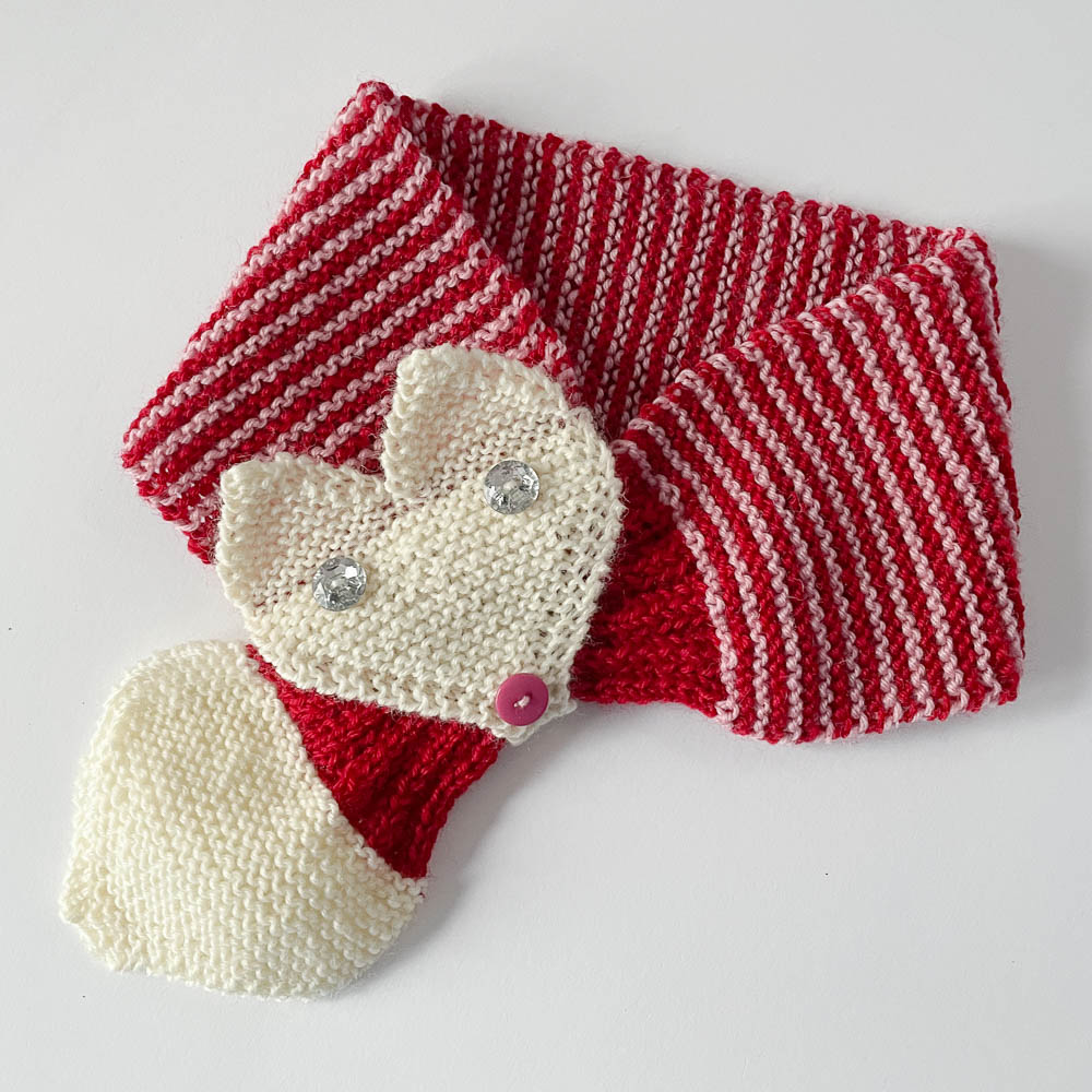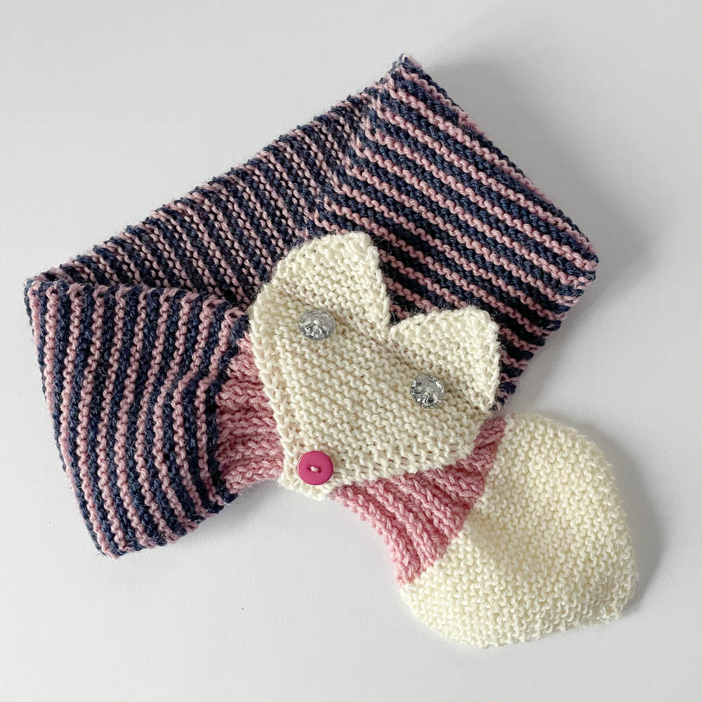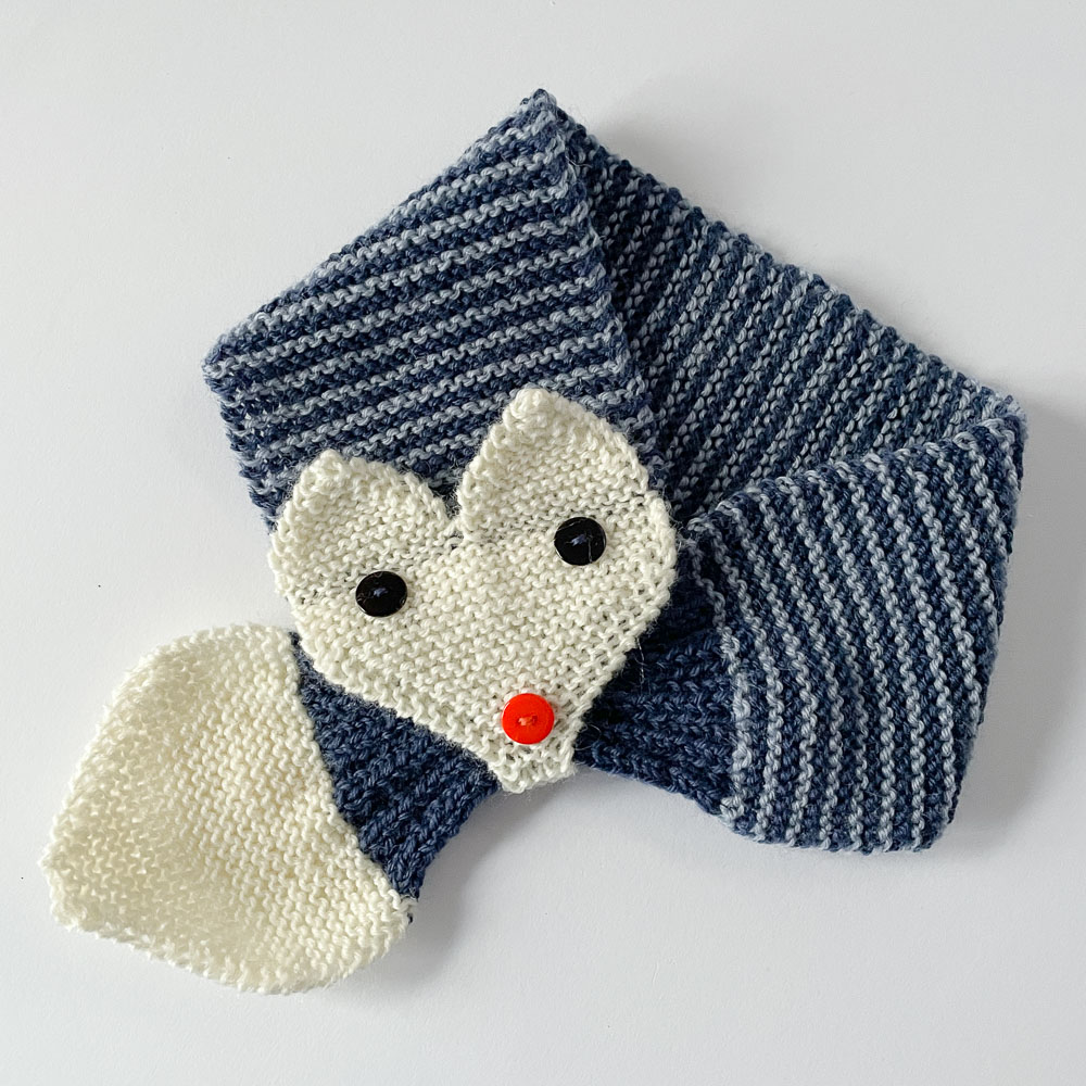 Ich habe in meinen Strickgruppen schon ganz oft den Fuchsschal für Kinder gesehen und hatte eigentlich beschlossen, ihn nicht zu stricken, weil ihn wirklich fast jede/r strickt. Ich habe dann aber doch mal einen für den Enkel angefangen und fand das Ergebnis so unfassbar niedlich, dass ich gleich noch zwei gestrickt habe für junge Damen im fast gleichen Alter.