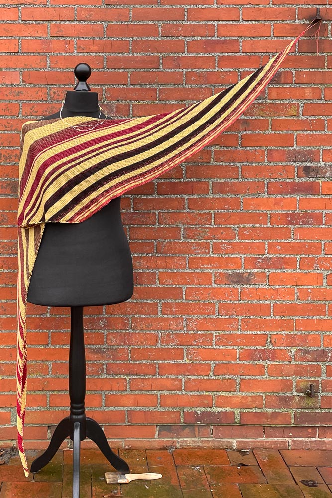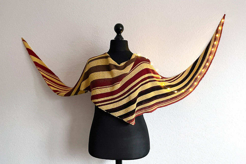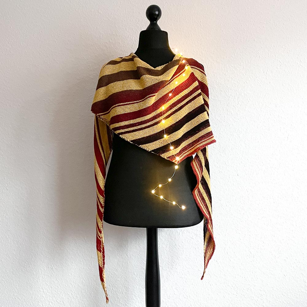 Mein Heiliger Andreas ist fertig; ich hatte Euch hier von der Wicklung und ihrem Schöpfer erzählt. Ich muss ganz ehrlich sagen, ich habe immer noch nichts im Schrank, zu dem das Tuch passen würde, aber es ist trotzdem das schönste Tuch, das ich bisher gestrickt habe.