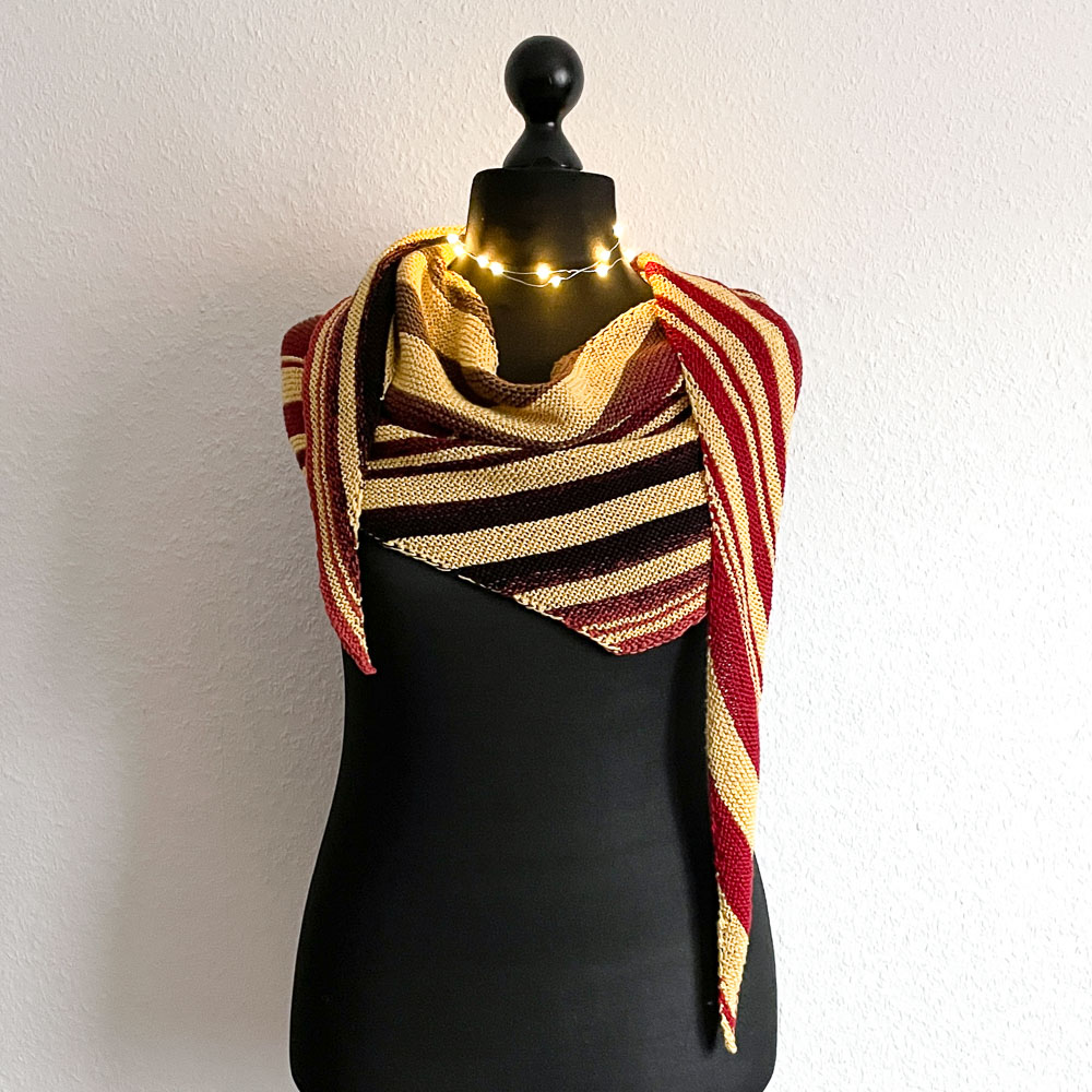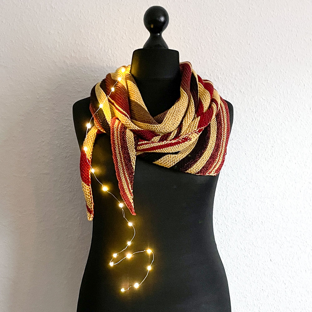 Gestrickt habe ich das Tuch als Linus, also als langes, schmales Tuch (ich habe Euch die Anleitung unten im Kleingedruckten verlinkt und dort auch kurz erklärt, wie ich die Ränder gestrickt habe). Es ist 232cm breit und 42cm tief und lässt sich wunderbar um den Hals schlingen.