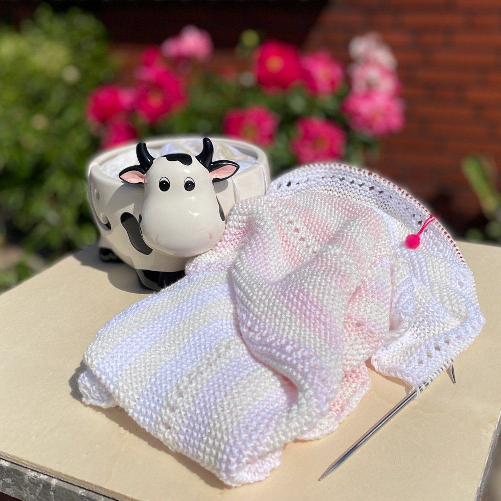 Und hier kommt das oben schon erwähnte Glitzervideo; der Glitzerfaden läuft nur in den wollweißen Streifen: