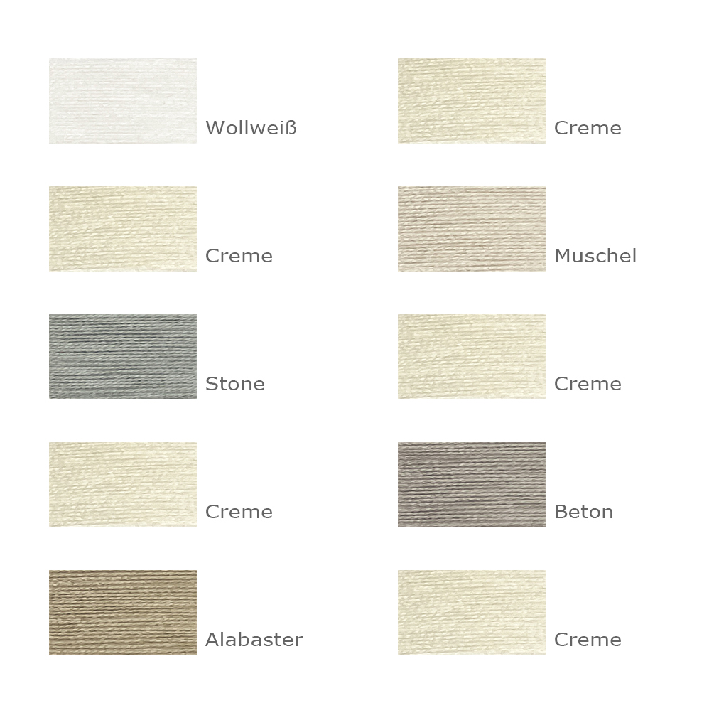 Den Irisee-Glitzerfaden hat mir Maike Dürkop von Meine kleine Wollwerkstatt empfohlen (sie hat die Bobbel auch wie immer gewickelt) und er ist wirklich wunderschön. Er ist extrem dünn und läuft als fünfter Faden im wollweißen Bobbel mit. Er reagiert auf das Licht, das auf ihn fällt und glitzert von verschiedenen Grüntönen über Hellblau bis Blau und Violett, das aber so dezent, dass es kein bisschen aufdringlich ist. Den Glitzer zu fotografieren ist mir trotz ungefähr hundert aufgenommener Fotos nicht wirklich gelungen; ich hänge aber unten ein Video an, wo man den Glitzer in den wollweißen Streifen erahnen kann. In Realität sieht man ihn je nach Lichteinfall mehr, aber er ist immer sehr dezent.