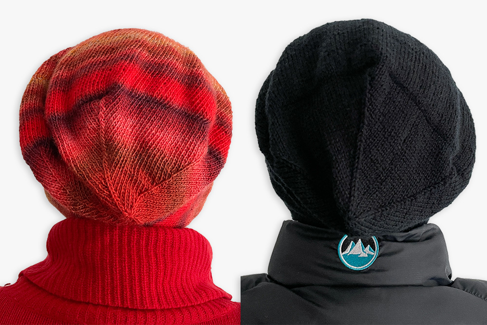 Bei beiden Mützen habe ich mit 3,25er-Nadeln gestrickt und nach Runde 75 noch zusätzliche 15 Runden gestrickt.