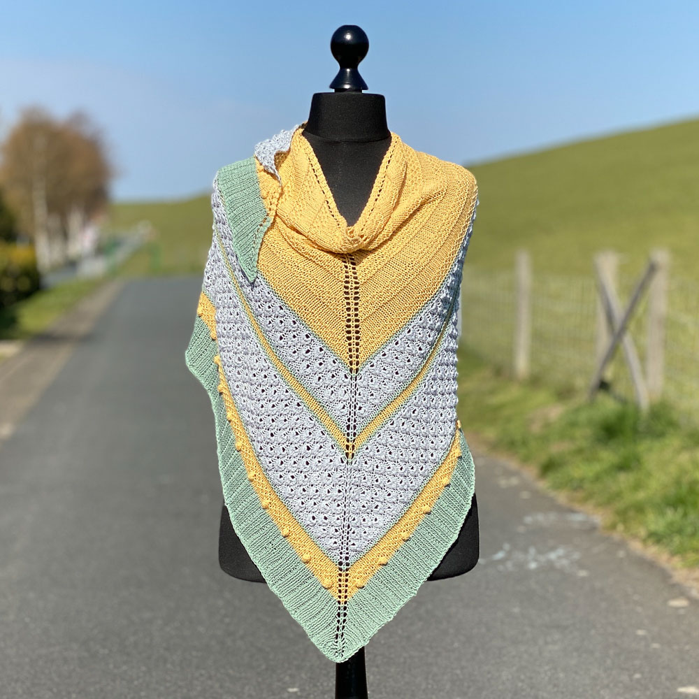 Die Tücher von Isabell Kraemer haben es mir angetan; ich mag ihre Anleitungen und ich mag vor allem ihre Tücher. Das ist mein drittes Tuch von ihr und mein erstes Strickwerk mit Farbwechseln.