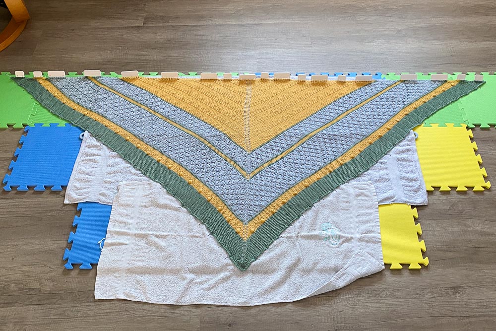 In ein paar Wochen kommt das Tuch wieder zu mir zurück. Liebe Karin, tausend lieben Dank; es ist schon etwas ganz Besonderes, wenn man für so ein schönes Wollgeschäft wie das Eure stricken darf - es hat mir unglaublich viel Spaß gemacht.