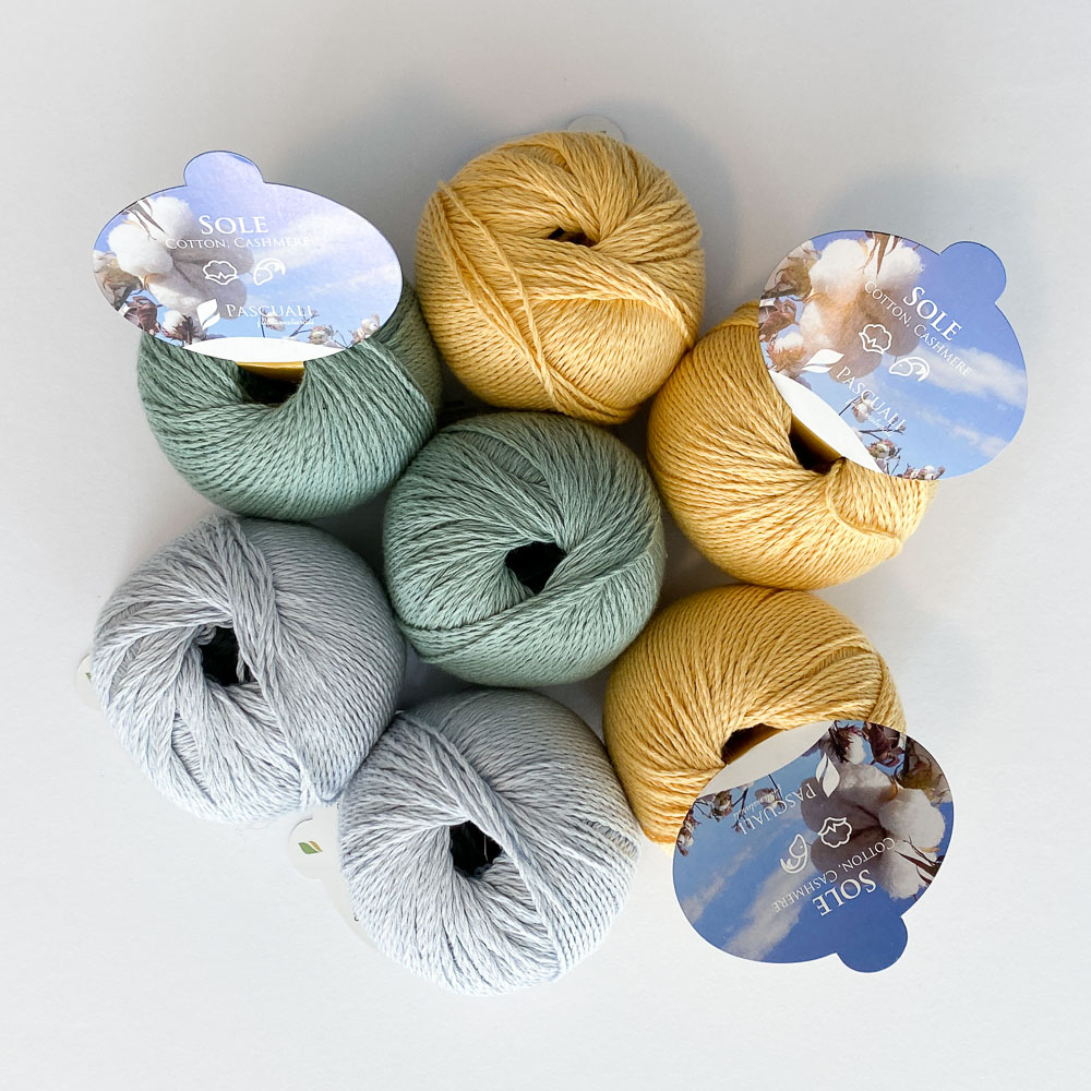 Die Anleitung ist eine Kaufanleitung bei Ravelry; Ihr findet sie hier. Gestrickt habe ich es aus Sole von Pascuali, das ist eine wunderbare Baumwoll-Kaschmir-Mischung (90% Baumwolle, 10% Kaschmir), die sich herrlich strickt und sich toll anfühlt.