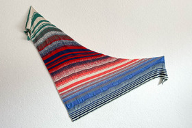 Am Zunahmerand: Hinreihe bis 1 Masche vor Ende stricken, 1 Umschlag, letzte rechts. Rückreihe: 1. Masche rechts, Umschlag verschränkt rechts stricken. - Größe des fertigen Tuches: Ca. 205cm x 95cm