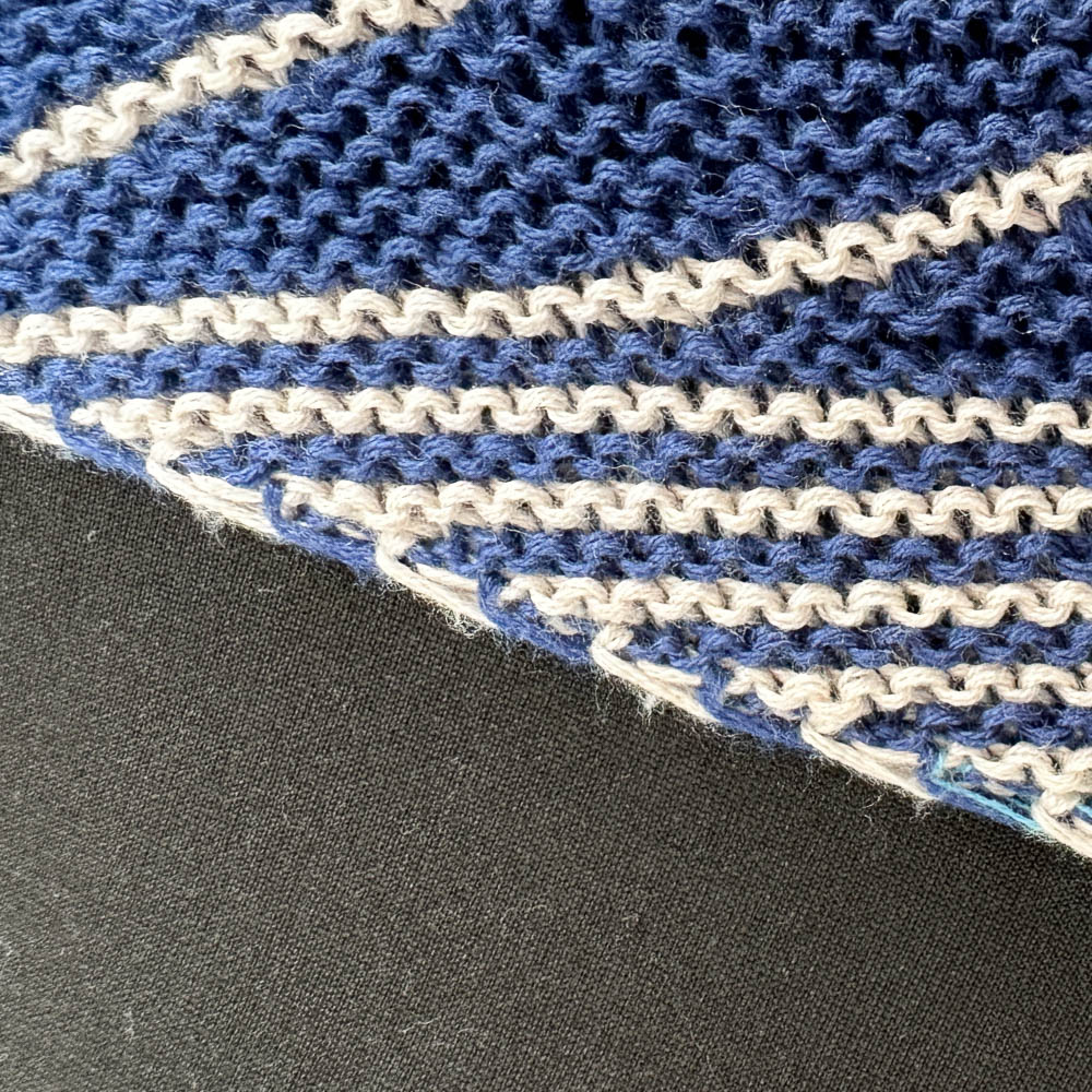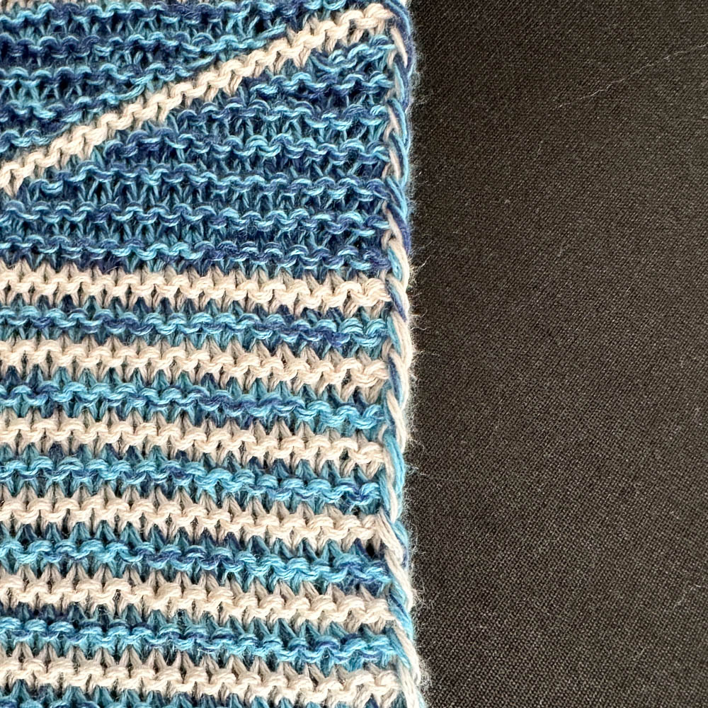 Die Kanten habe ich etwas anders gestrickt als in der Anleitung von Kirsten angegeben, ich habe folgendes geändert: