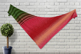 Am Zunahmerand: Hinreihe bis 1 Masche vor Ende stricken, 1 Umschlag, letzte rechts. Rückreihe: 1. Masche rechts, Umschlag verschränkt rechts stricken. - Größe des fertigen Tuches: Ca. 185cm x 85cm