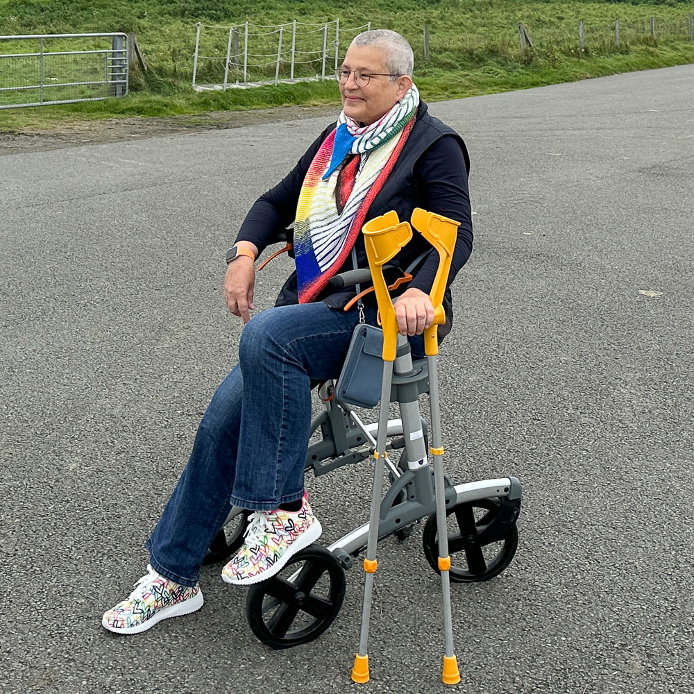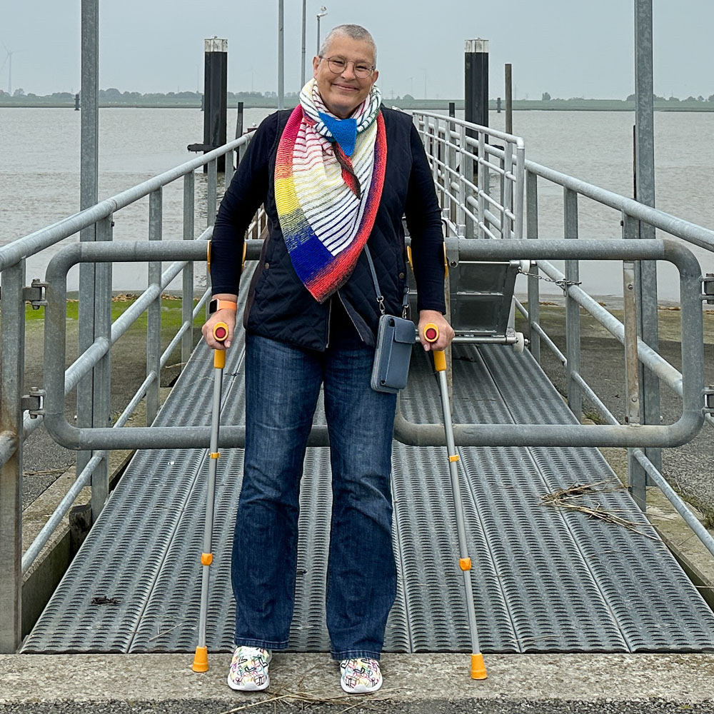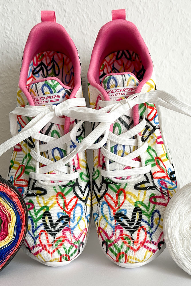 Die Schuhe sind übrigens die 'Skechers Bobs Squad Sneaker' mit Allover-Herzchenprint. Krücken und einen Rollator namens Harry habe ich auf den Bildern, weil ich wenige Wochen vor der Aufnahme der Bilder eine funkelniegelnagelneue Hüfte bekommen habe. Inzwischen bin ich wieder ohne diese praktischen Hilfsmittel unterwegs.