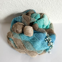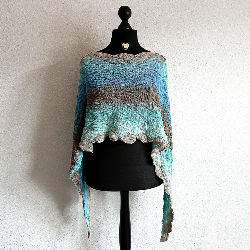 Das Tuch 'Wina', das man nach einer Anleitung von Andrea Schmitz für Schachenmayr strickt, hatte ich in meiner Facebook-Gruppe gesehen; Ines Küstermann hatte es gestrickt und es hatte mir sofort gefallen. Also wollte ich es auch stricken und nach einigen Grabungen in meinem Fundus habe ich sogar die passende Wolle gefunden.