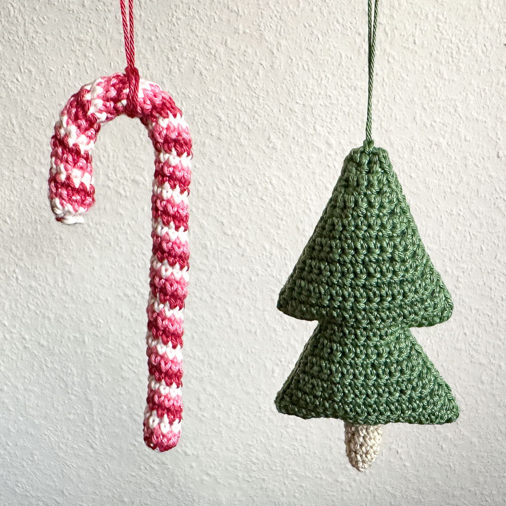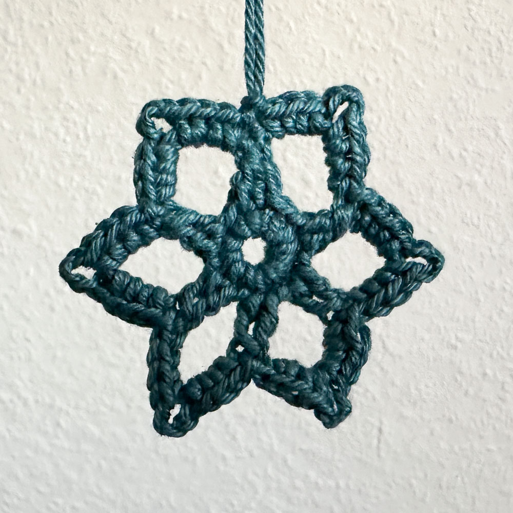 Eine unserer Schwiegertöchter hatte sich gehäkelte Weihnachtsdeko zum Aufhängen gewünscht. Ich musste zuerst mal schlucken, denn ich kann nicht gut häkeln und tue es auch nicht besonders gerne. Aber natürlich wollte ich ihren Wunsch erfüllen, also habe ich Baumwolle in ihren Wunschfarben bestellt und zur Häkelnadel gegriffen.