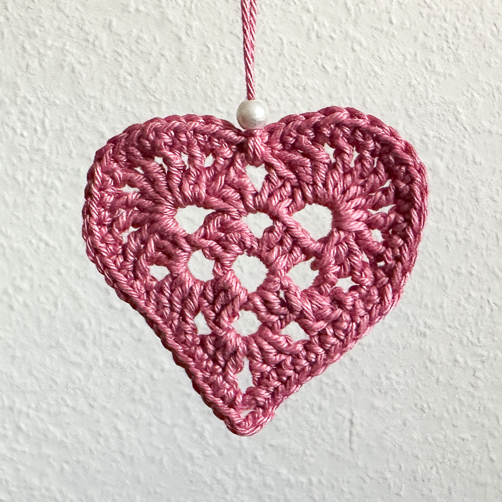 Die großen und kleinen Sterne und die großen Herzen habe ich nach dem Häkeln in ein Wasserbad mit Stärke gelegt, dann in einem Handtuch ausgedrückt und gespannt trocknen lassen. Die kleinen Herzen muss man nur etwas in Form zupfen.