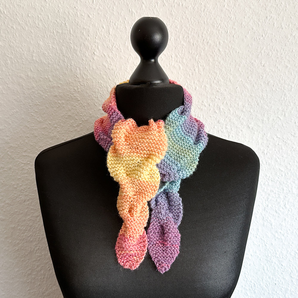 Grundsätzlich mag ich so ein gestricktes Halstuch aber sehr; vor allem aus Modal ist es herrlich kuschelig und hält den Hals schön warm. Ich werde mich also auf die Suche nach anderen Anleitungen für kleine Halstücher machen; ein kleines Sortiment davon in bunten Farben hätte ich nämlich schon gerne.