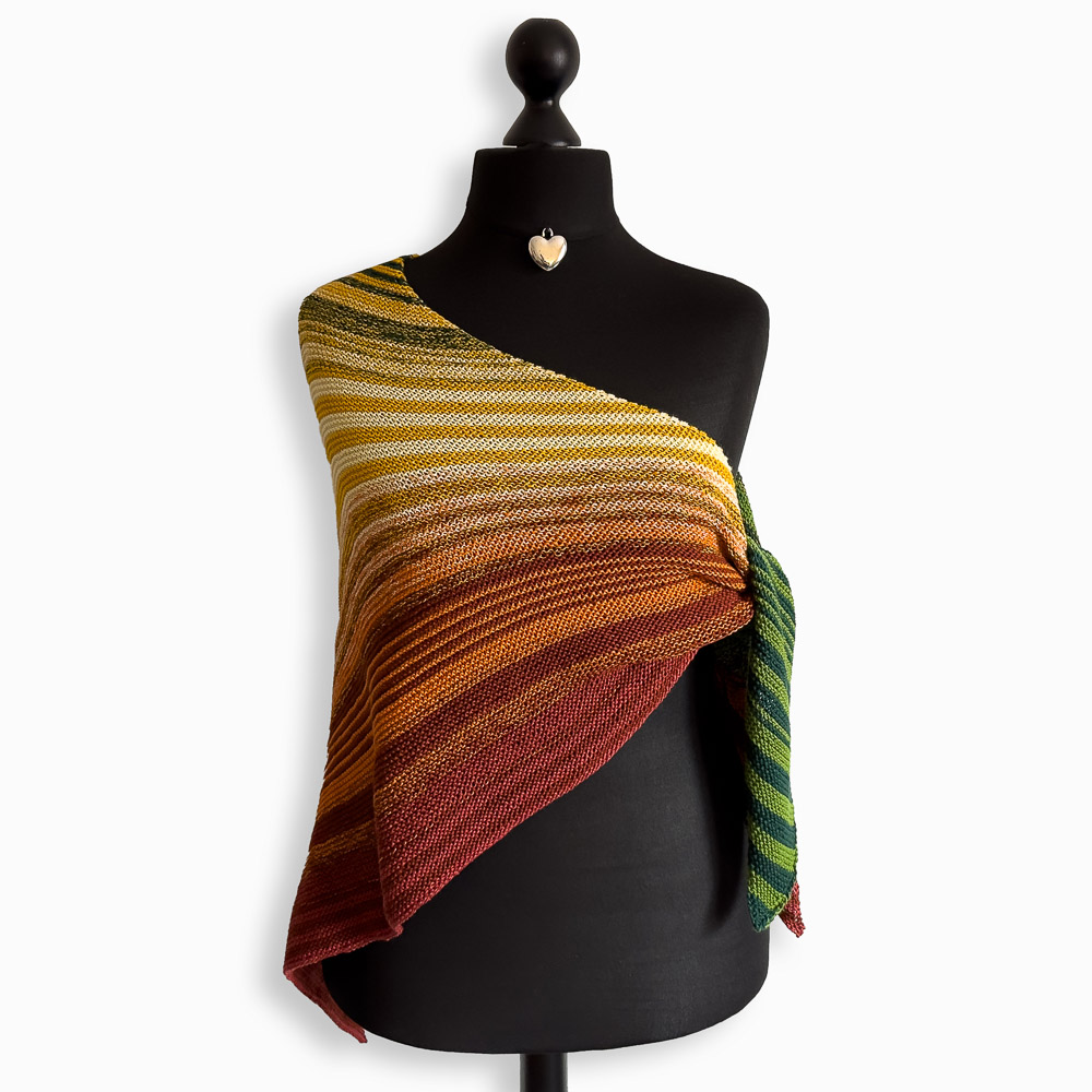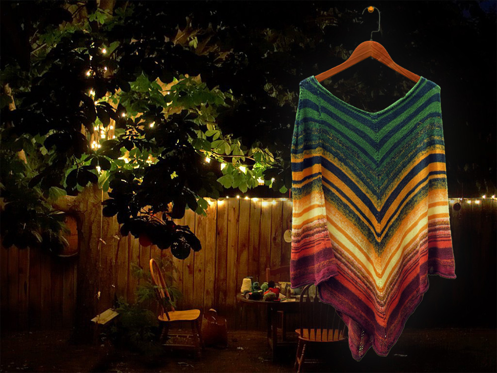 Ursprünglich wollte Maike zusammen mit der Wicklung auch eine Anleitung für einen Poncho veröffentlichen; den Poncho hatte sie schon für sich gestrickt und er ist wirklich ganz besonders schön geworden. Aus diversen Gründen hat es mit der Anleitung leider nicht geklappt; die sehr lustige Geschichte dazu findet Ihr hier in der Leuchti-Facebook-Gruppe.