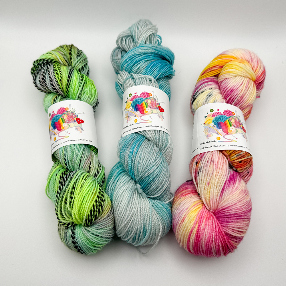 Wichtig ist auch die Farbe des Lichtes in der Box, damit die Farben der Wolle oder anderer Fotoobjekte nicht verfälscht werden. Mein Licht hat 5.500 Kelvin (Tageslichtweiß; etwas über Neutralweiß) und die Farben sind auf den Fotos perfekt. Die Helligkeit des Lichtes kann man in verschiedenen Stufen einstellen.