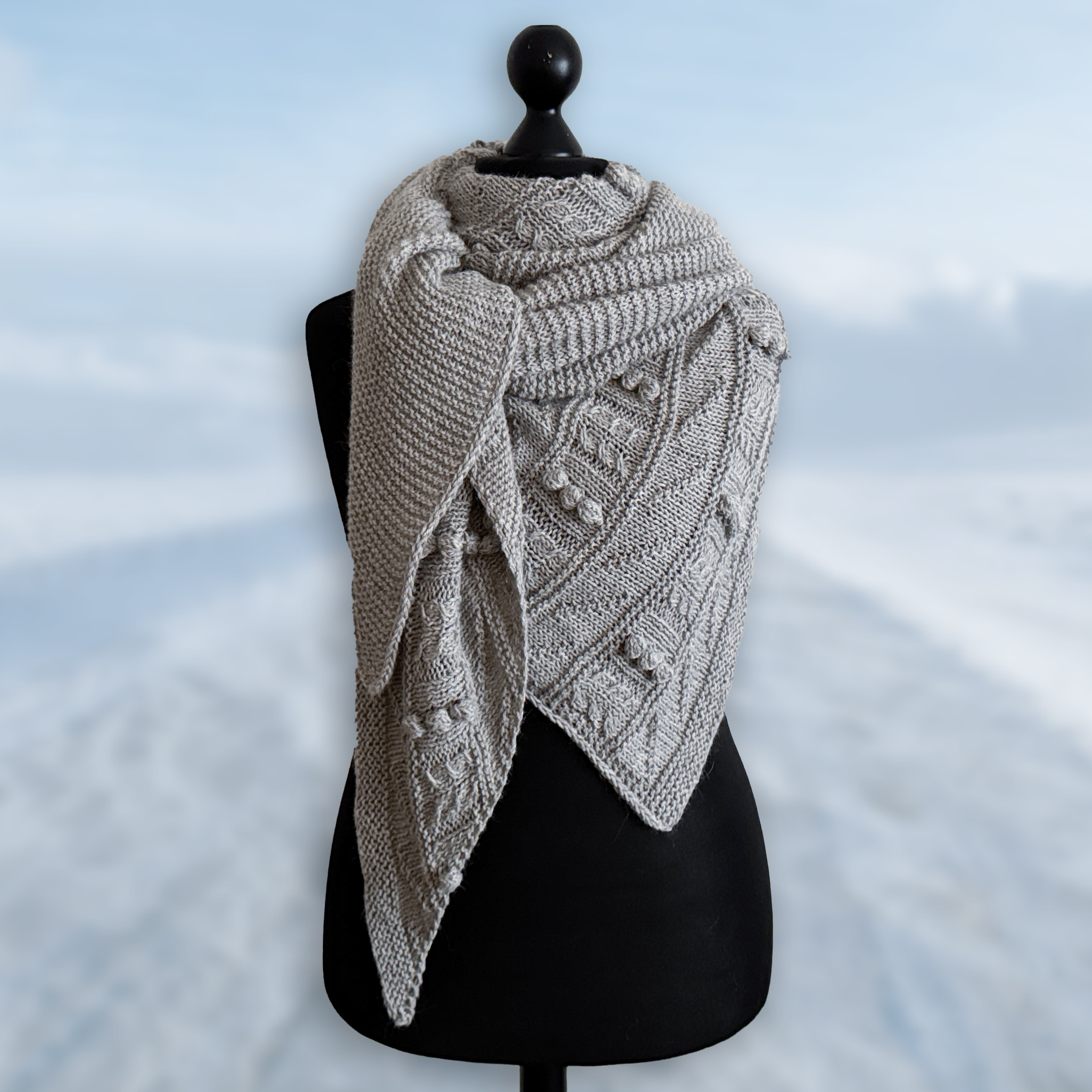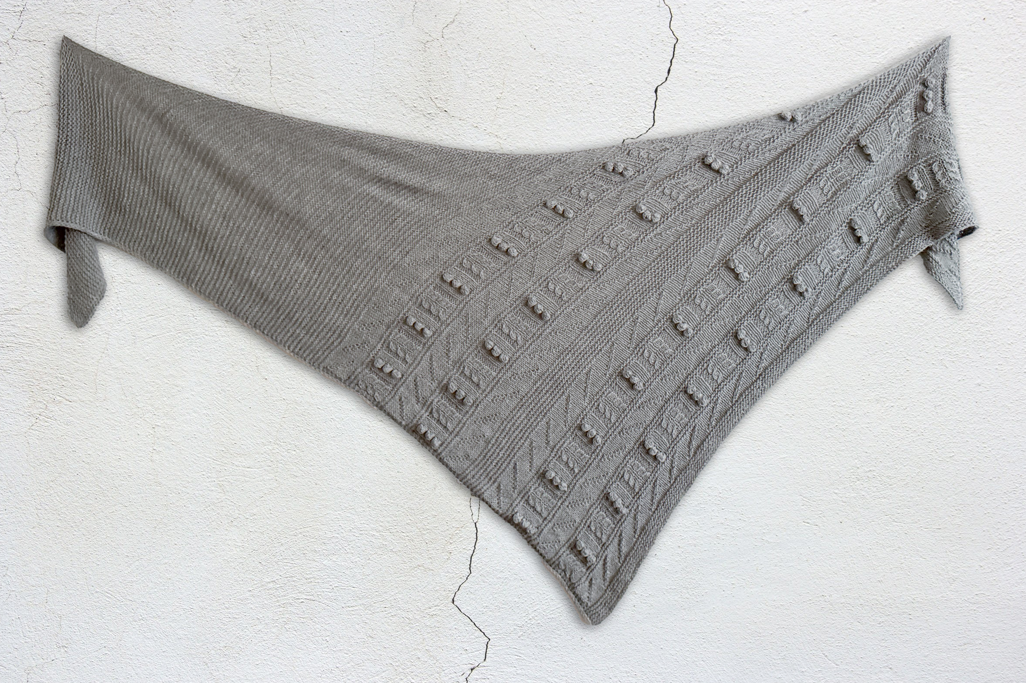 Die Anleitung für das Bavaria von Isabell Kraemer (hier, nur auf Englisch und Japanisch) habe ich mir vor ziemlich genau drei Jahren gekauft. Mir gefiel das Tuch so gut, aber gestrickt habe ich es erst jetzt. Zum einen konnte ich mich wegen der Noppen nicht zum Stricken aufraffen, zum anderen fehlte mir die passende Wolle.