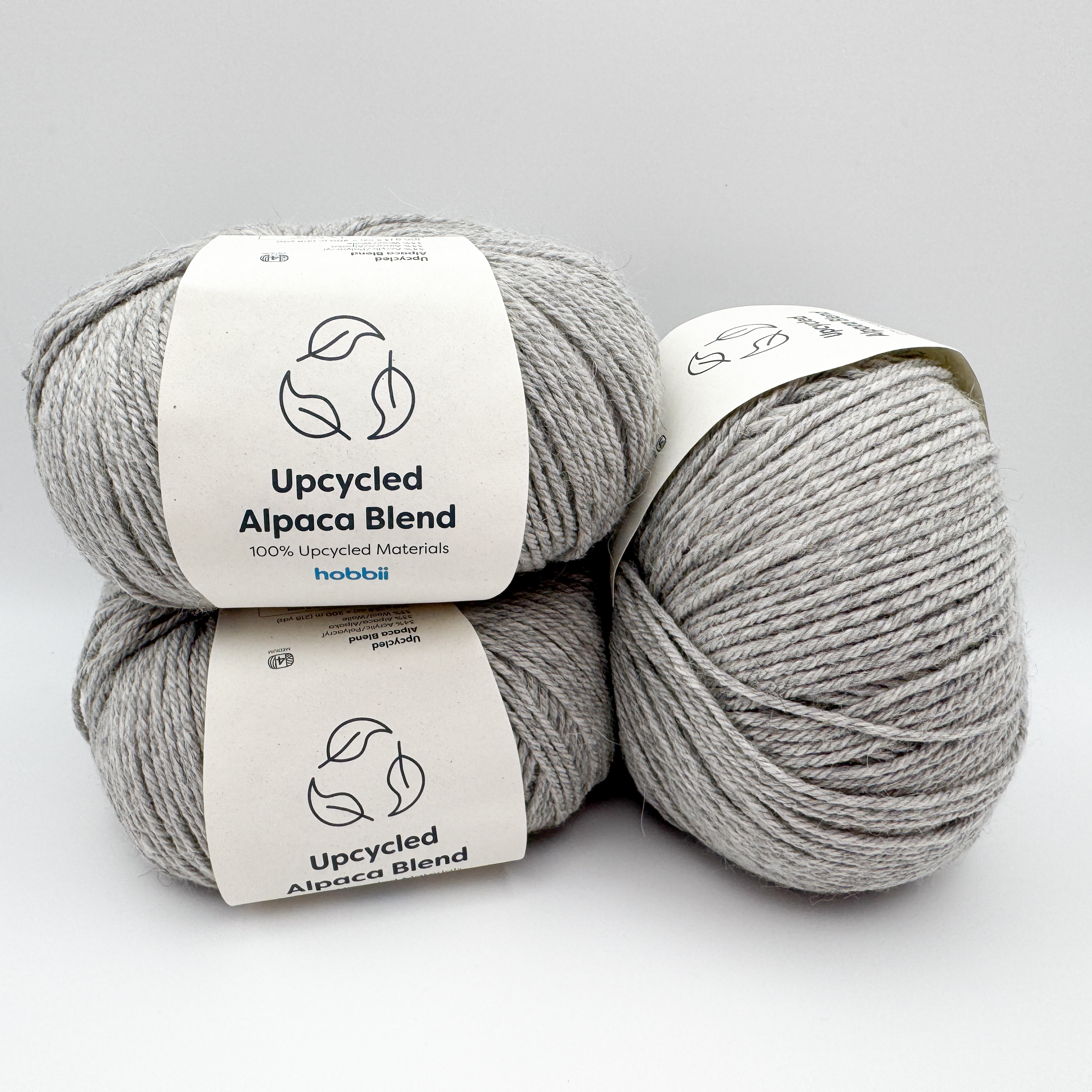 Nachdem das mit den Noppen also geklärt war, brauchte ich nur noch Wolle. Entschieden habe ich mich für die Upcycled Alpaca Blend von Hobbii, eine Mischung aus je einem Drittel Alpaca, Wolle und Polyacryl. Sie ist nach dem Waschen total weich und kuschelig, riecht feucht leicht nach Schaf (mein Bartträger behauptet nach nassem Hund, wobei ich mich frage, woher er das weiß - wir haben nämlich keinen) und ist herrlich warm.
