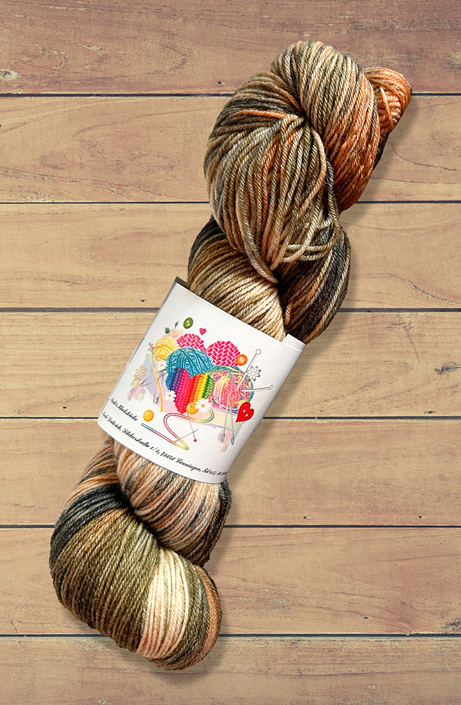 Zu Weihnachten hatte ich für meinen jüngeren Sohn ein paar Socken in Größe 50 gestrickt hier, die ganz großen), wofür ich immer knapp 15g mehr als einen Strang Wolle brauche - ich hatte also gute 85g einer sehr herrentauglichen, von meiner Freundin Nicole in ihrer Klecksküche handgefärbten vierfädigen Merino-Sockenwolle übrig. Das war ausgesprochen praktisch, denn eine Bekannte hat mich gefragt, ob ich ein paar Herrensocken in 42/43 stricken könne - dafür sind 85g ausgesprochen ideal.