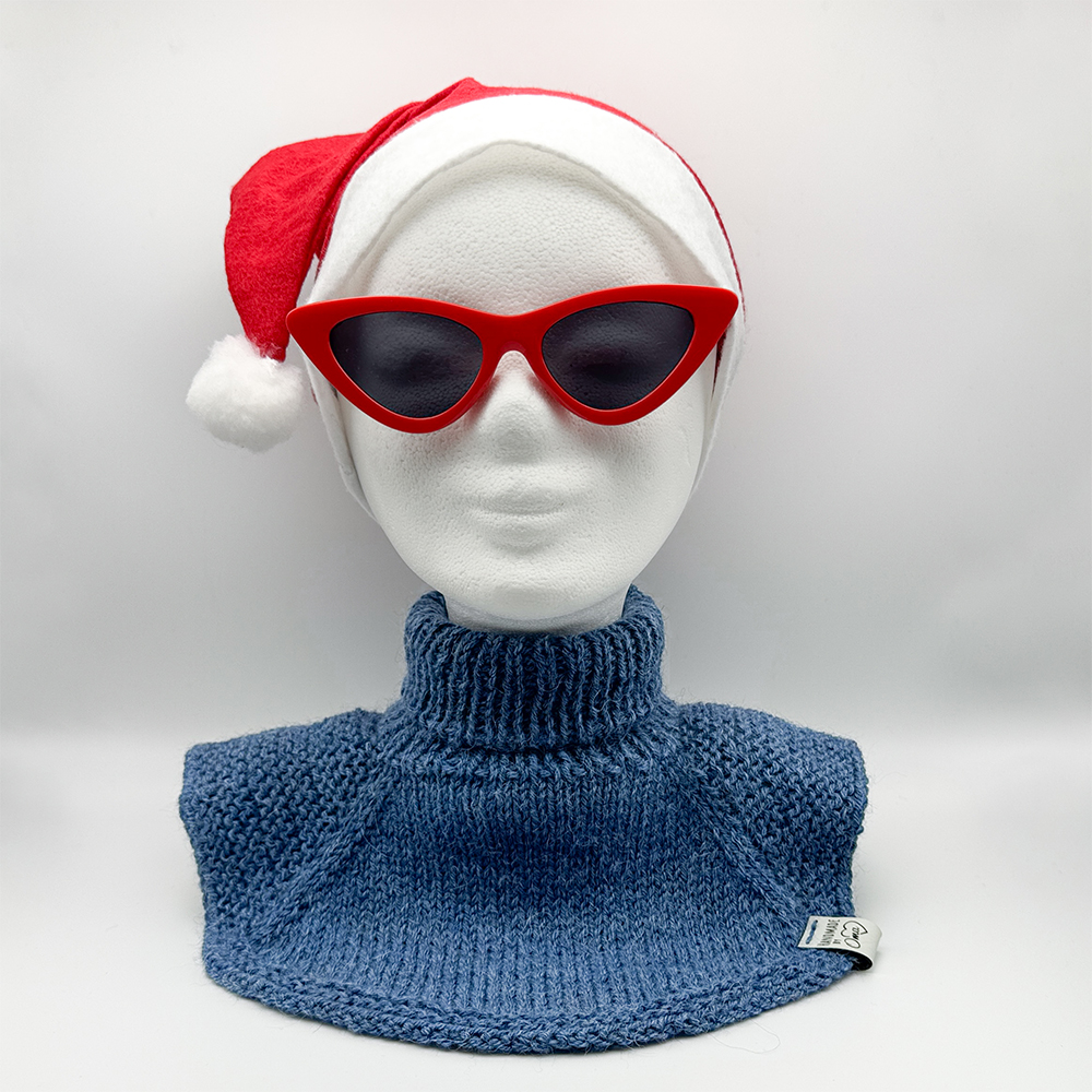 Eine Anleitung, die mir gefiel, hatte ich sehr schnell gefunden; sie ist von der Handarbeitsstube Claudia Lindner und es gibt sie hier bei Crazypatterns. Gestrickt habe ich mit 4,5er-Nadeln und Upcycled Alpaca Blend von Hobbii in der Farbe Rain Cloud (19); das ist ein Garn aus je einem Drittel Alpaca, Wolle und Polyacryl. Der Schalkragen ist 37 x 28cm groß; verbraucht habe ich knapp 65g Wolle. Da die Wolle etwas dicker ist (200m/100g) war der Schal innerhalb von ein paar Stunden fertig.