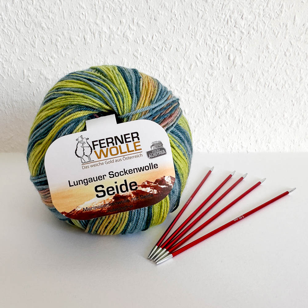 Vor gut zwei Wochen kam ein völlig unerwartetes Päckchen bei uns an. Darin war eine Karte mit ganz lieben Worten und ein Knäuel Lungauer Sockenwolle mit Seide - ich habe mich so riesig über beides gefreut. Ich hatte immer wieder mal überlegt, mir so ein Knäuel zu kaufen, weil ich die seidige Sockenwolle mal ausprobieren wollte, aber ich habe es nie gemacht; ich dachte, dass Seide und ich nicht so wirklich zusammen passen. Und nun hatte mir ein ganz lieber Mensch genau so ein Knäuel geschenkt.