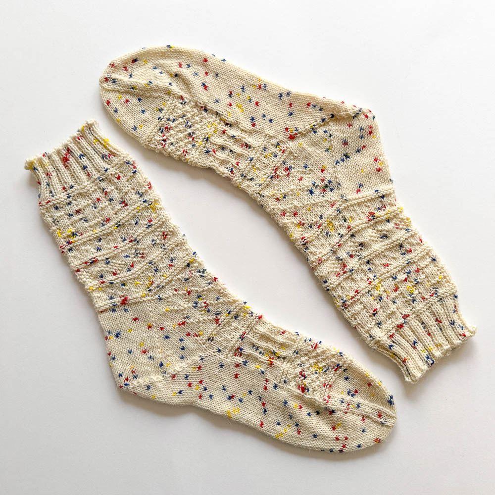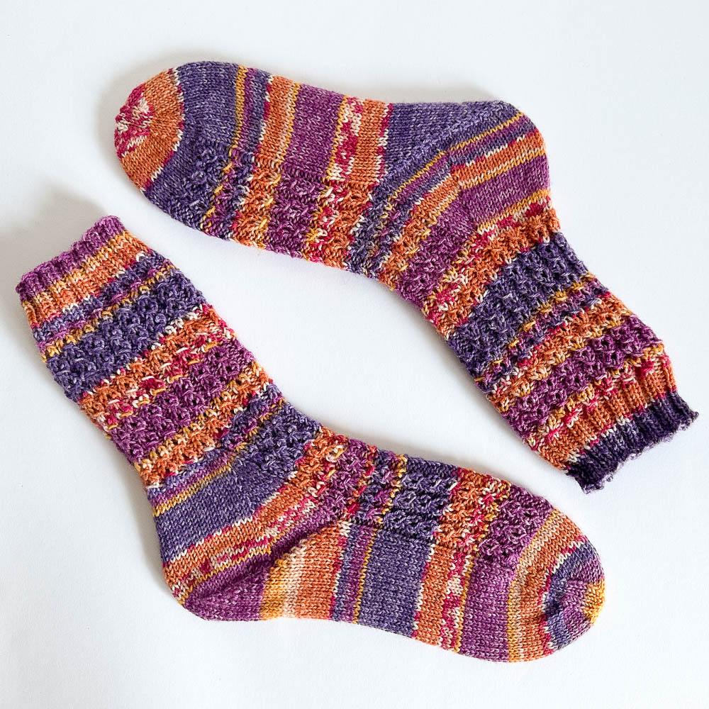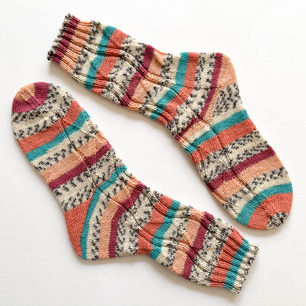 Alle vier Sockenpaare sind mit 2/2er-Bündchen gestrickt, natürlich nach meiner vierteiligen Sockenanleitung mit ausführlichen Videos und der dort verlinkten Tabelle: