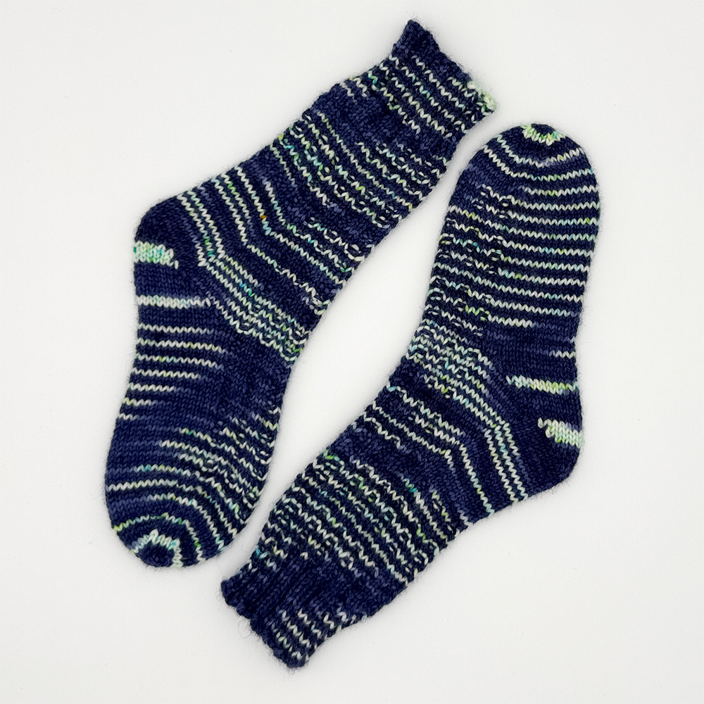 Aber zurück zu Maltes Socken; hier sind sie. Natürlich sind auch sie aus Nicoles wunderbarer Wolle. Gestrickt habe ich sie nach meinem vierteiligen Sockentutorial mit über einer Stunde Videoanleitungen, das Ihr hier findet: