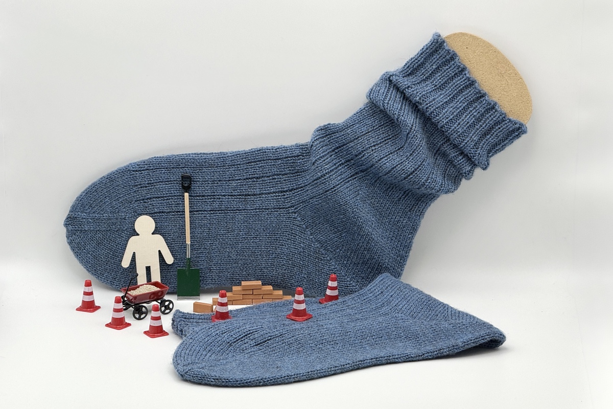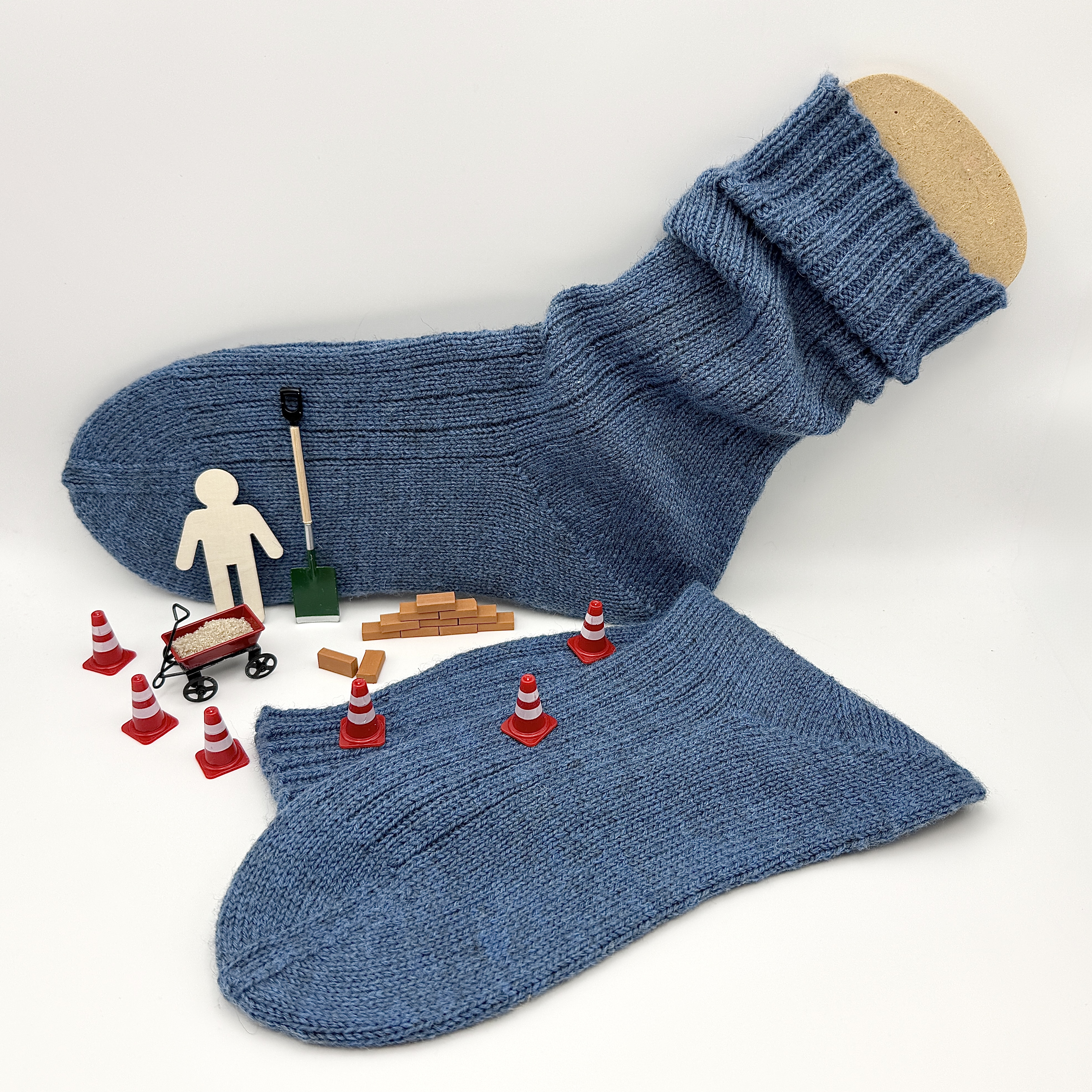 Ich durfte ein Paar Socken in 44/45 für den Einsatz in Arbeitsschuhen stricken. Sie sollten nicht bunt gemustert sein, sondern uni und auch in einer eher dezenten Farbe,