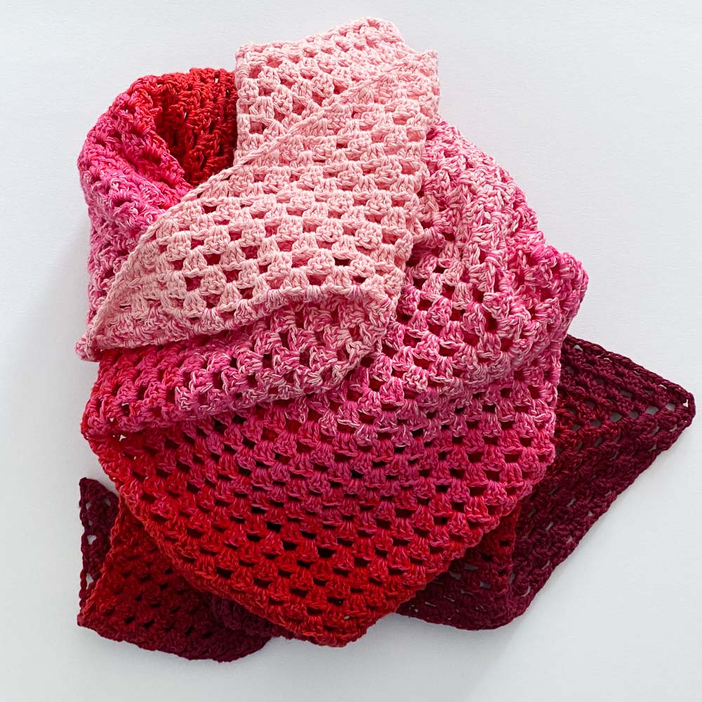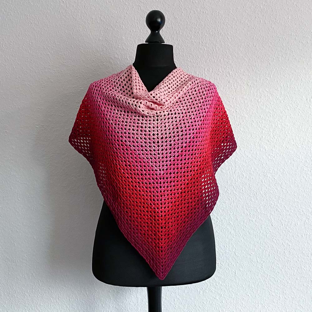 Wieso ich plötzlich gehäkelt habe, habe ich Euch ja hier erzählt. Inzwischen geht es meiner Hand zum Glück wieder gut und ich stricke auch schon wieder fleißig, aber natürlich habe ich das Häkeltuch trotzdem fertig gemacht. Das Granny-Muster habe ich nach einer Anleitung von Sylvie Rasch gehäkelt, die Ihr hier findet.