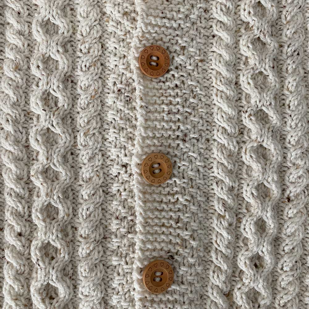 Das Fertigstellen des Jäckchens bestand also nur daraus, die Schulternähte zu schließen, die Ärmel einzusetzen und die Knöpfe anzunähen. Ich muss gestehen, dass mir meine Version des Jäckchens besser gefällt.