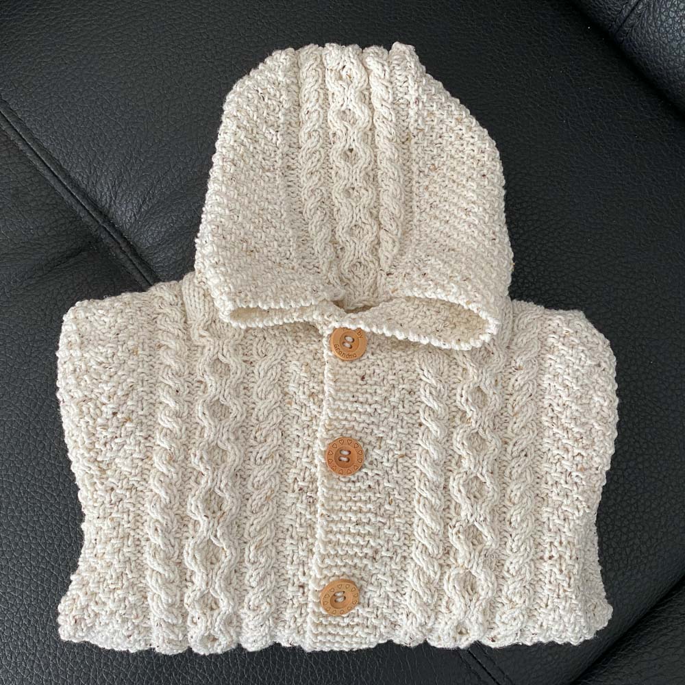 Die Wolle, die ich verwendet habe, ist Britney von Buttinette; sie ist schön weich, warm und gemütlich und man kann sie in der Waschmaschine waschen, was bei Kindersachen ja wichtig ist. Die schönen Holzknöpfe sind von Hobbii (hier und hier).