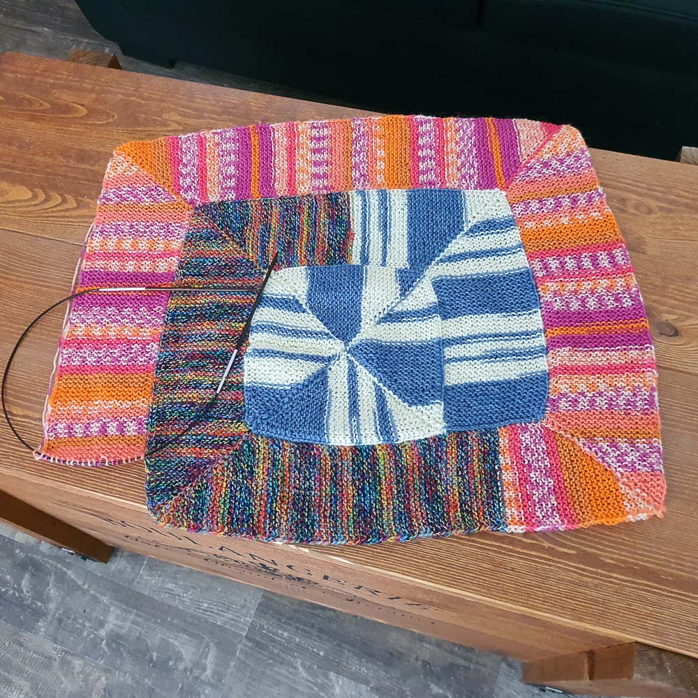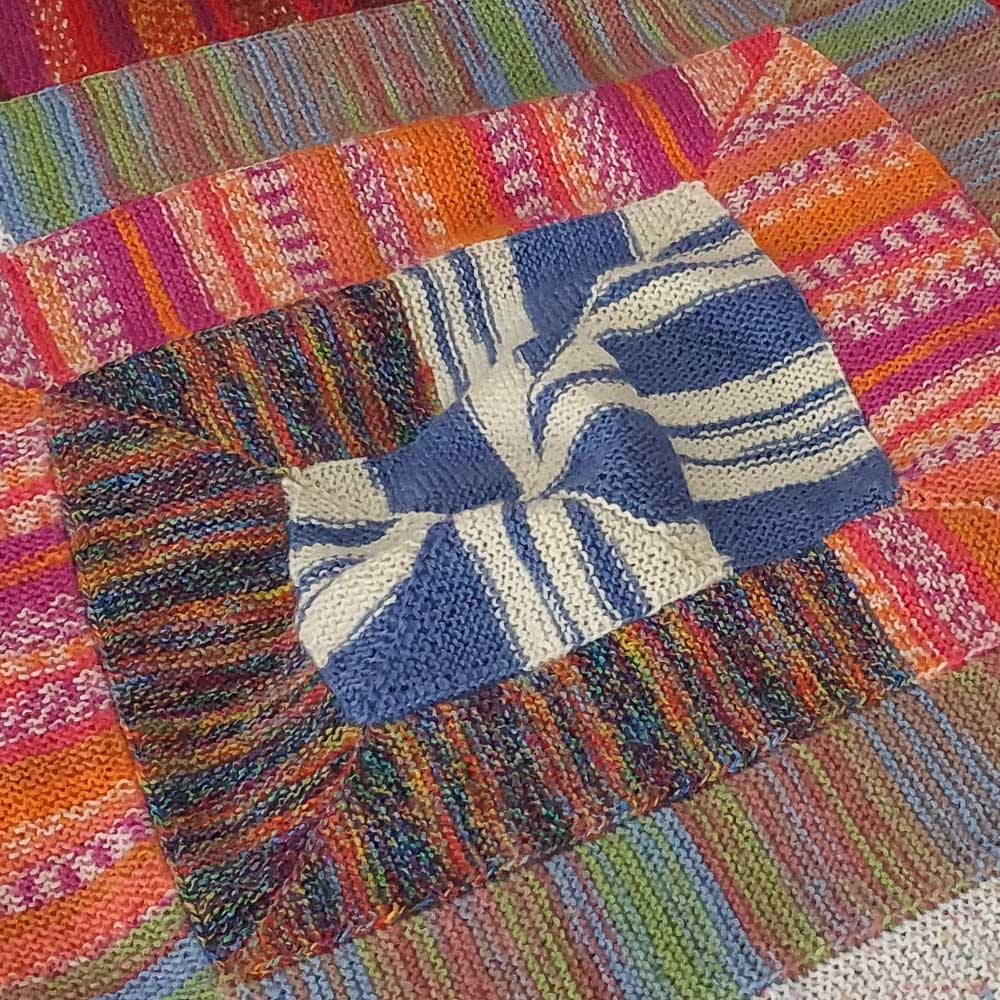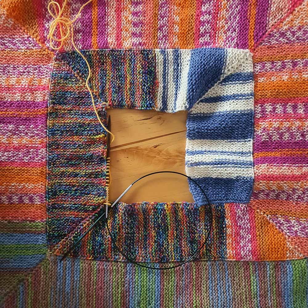 Der Anfang war schnell gemacht und das Stricken hat unglaublich viel Spaß gemacht. Schon ein paar Tage später war ich beim sechsten Wollrest angekommen.