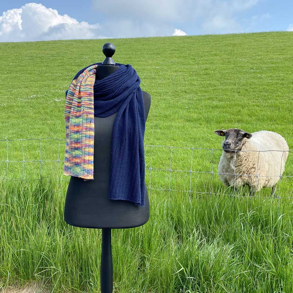 Schon beim Stricken des ersten Koldings habe ich überlegt, was ich bei einem zweiten wohl anders machen würde. Klar war mir, dass ich, wie auch in der Anleitung vorgesehen, einen kontrastfarbigen Teil haben wollte; außerdem sollte der Kolding länger werden als der erste. Ich bin etwas umfangreicher gebaut und brauche, um mich in ein Tuch richtig einwickeln zu können, ein paar Zentimeter mehr als andere.