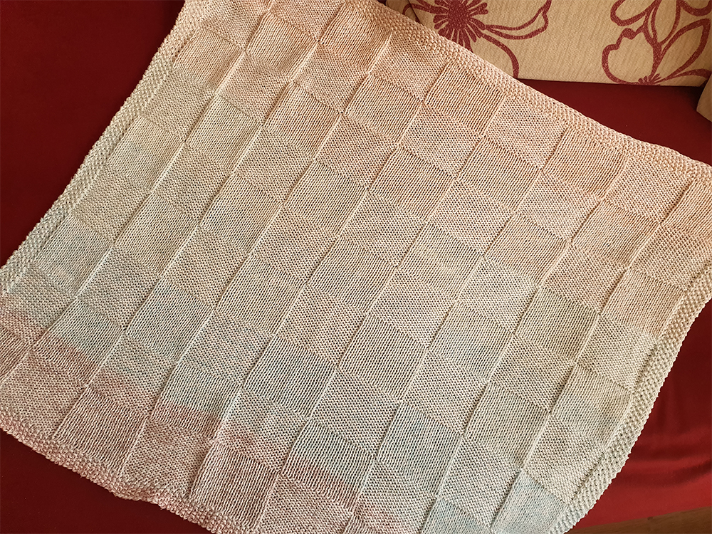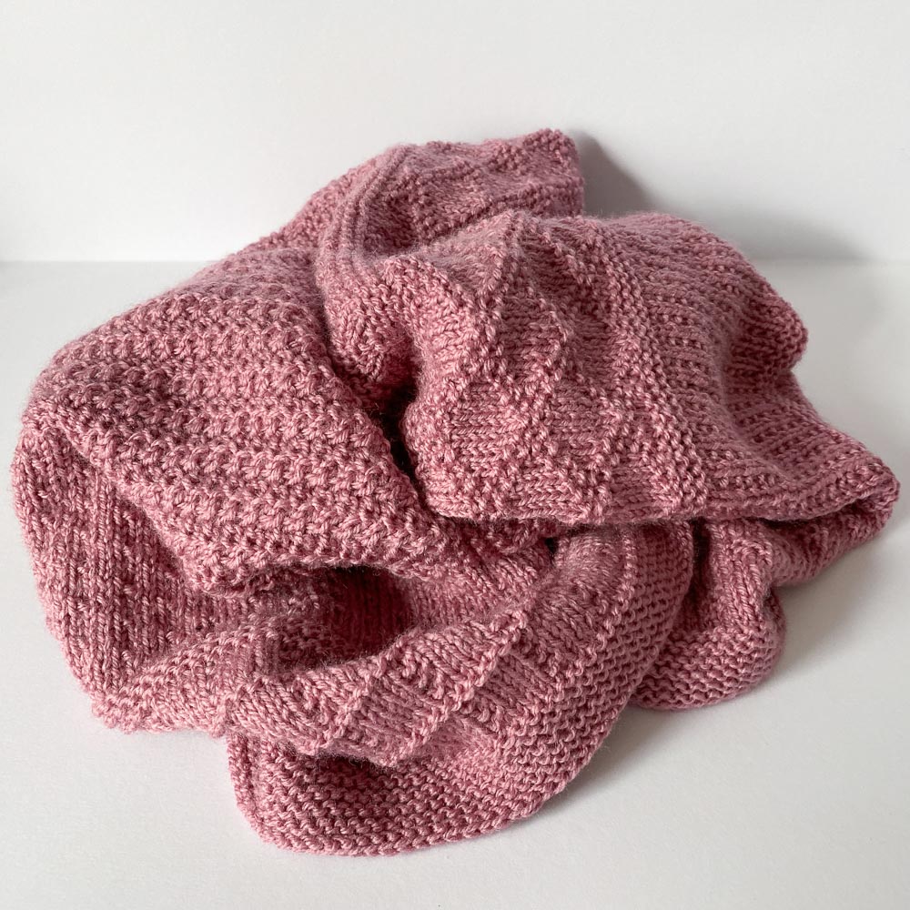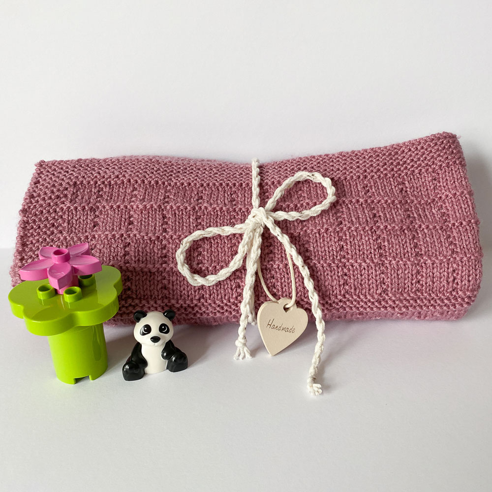 Wolle ist aber trotzdem noch reichlich da und die möchte natürlich verarbeitet werden, weshalb ich eine Babydecke gestrickt habe. Ich weiß, dass es Menschen gibt, die Acrylwolle für Babys unmöglich finden, aber ich finde sie einfach praktisch; gerade eine Babydecke ist ständig in der Waschmaschine und bei Acrylgarn (zumindest meinem) kann sie sogar in den Trockner. Ich habe sehr knappe 400 Gramm Amigo von Hobbii verstrickt (ich hatte 8,1 Gramm übrig), in der Farbe Light Lilac (48).