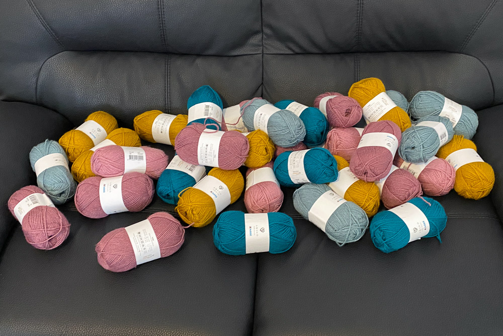 Eigentlich hatte ich mir eine Menge Acrylgarn bestellt, um für unsere Kinder Sofakissen zu stricken; die Wolle hatten sich die Kinder ausgesucht. Ich muss gestehen: An den Sofakissen bin ich gnadenlos gescheitert und habe alle fünf gestarteten Versuche in der Mülltonne versenkt; für manche stricktechnischen Dinge habe ich einfach überhaupt kein Talent.