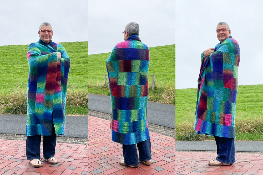 Ein ganz liebes Dankeschön geht an Annelie; ohne sie hätte ich nicht im richtigen Moment die richtige Wolle gehabt. Und einen dicken Kuss für meinen Mann, der die 22 Dauerstricktage mit mir durchgestanden und mich wunderbar entlastet und unterstützt hat. Meine Freundin hat sich sehr gefreut und das ist genau das, was ich erreichen wollte.
